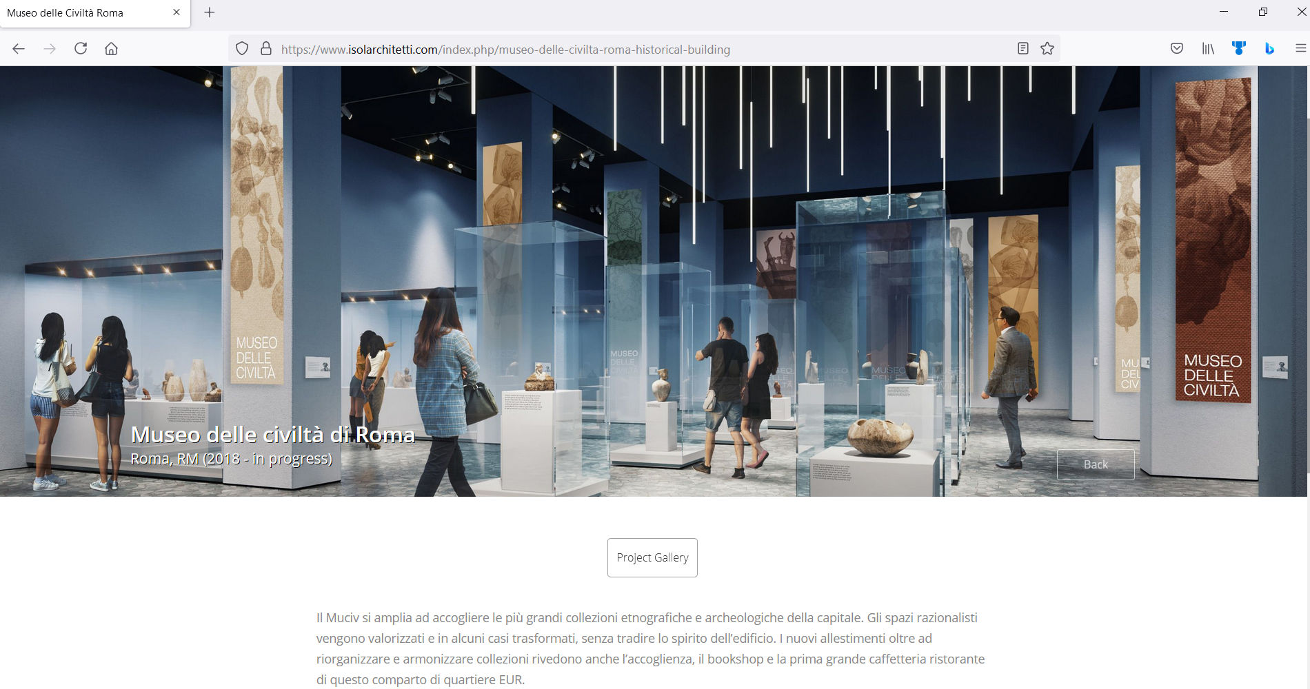 La sezione Progetto risulta chiara, leggibile, esauriente. Tramite pulsanti e link alla gallery, sviluppati appositamente da Vision in Motion, l'utente può scoprire più foto, prospettive o rendering del progetto selezionato.